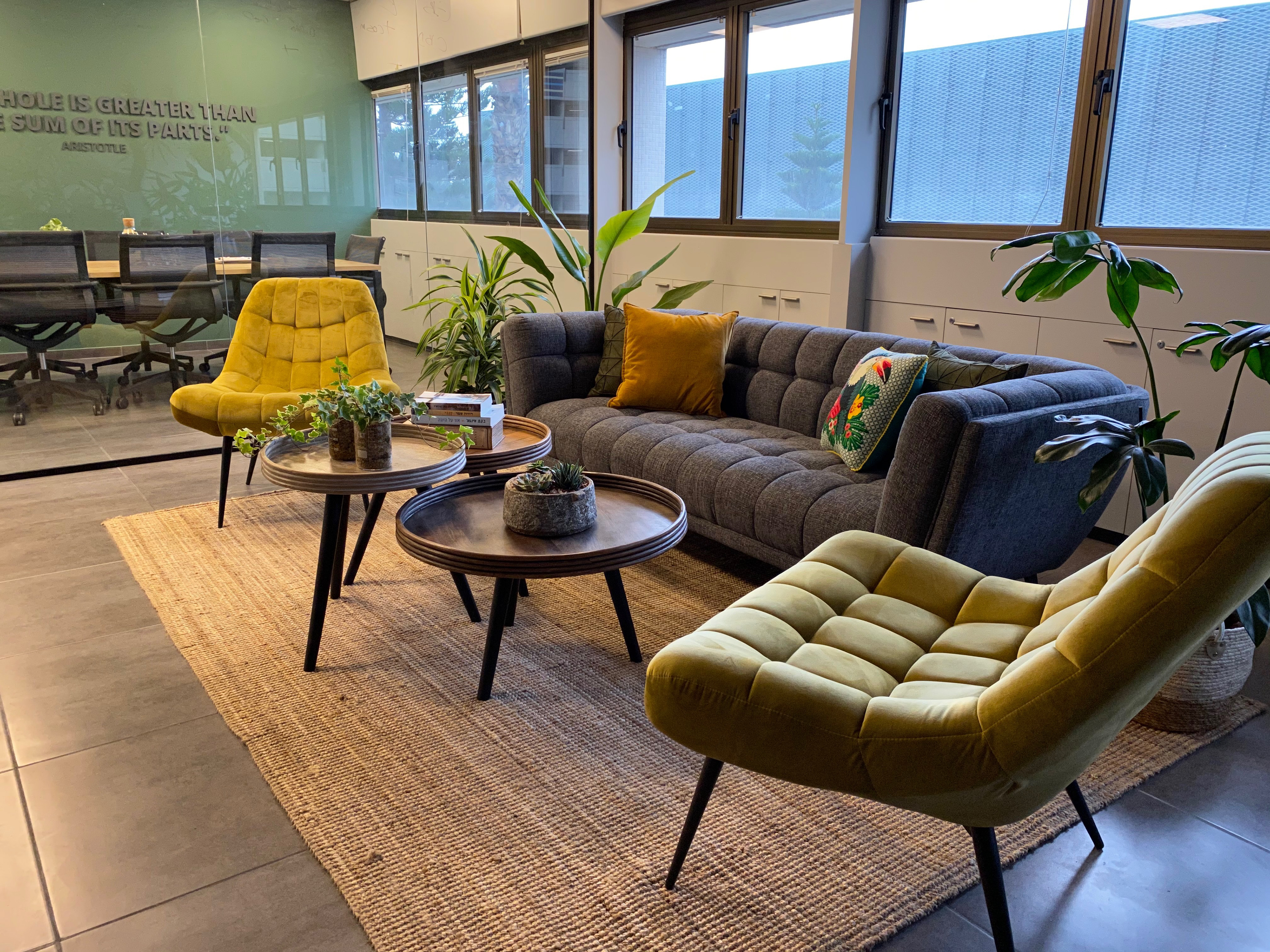 Office & lab design for a cannabis startup company. Accompanying space selection consulting and energy flow mapping. Connecting the world of research and development to the natural world, using the principles of Biophilic design. Company branding including online space design - website, presentations etc.